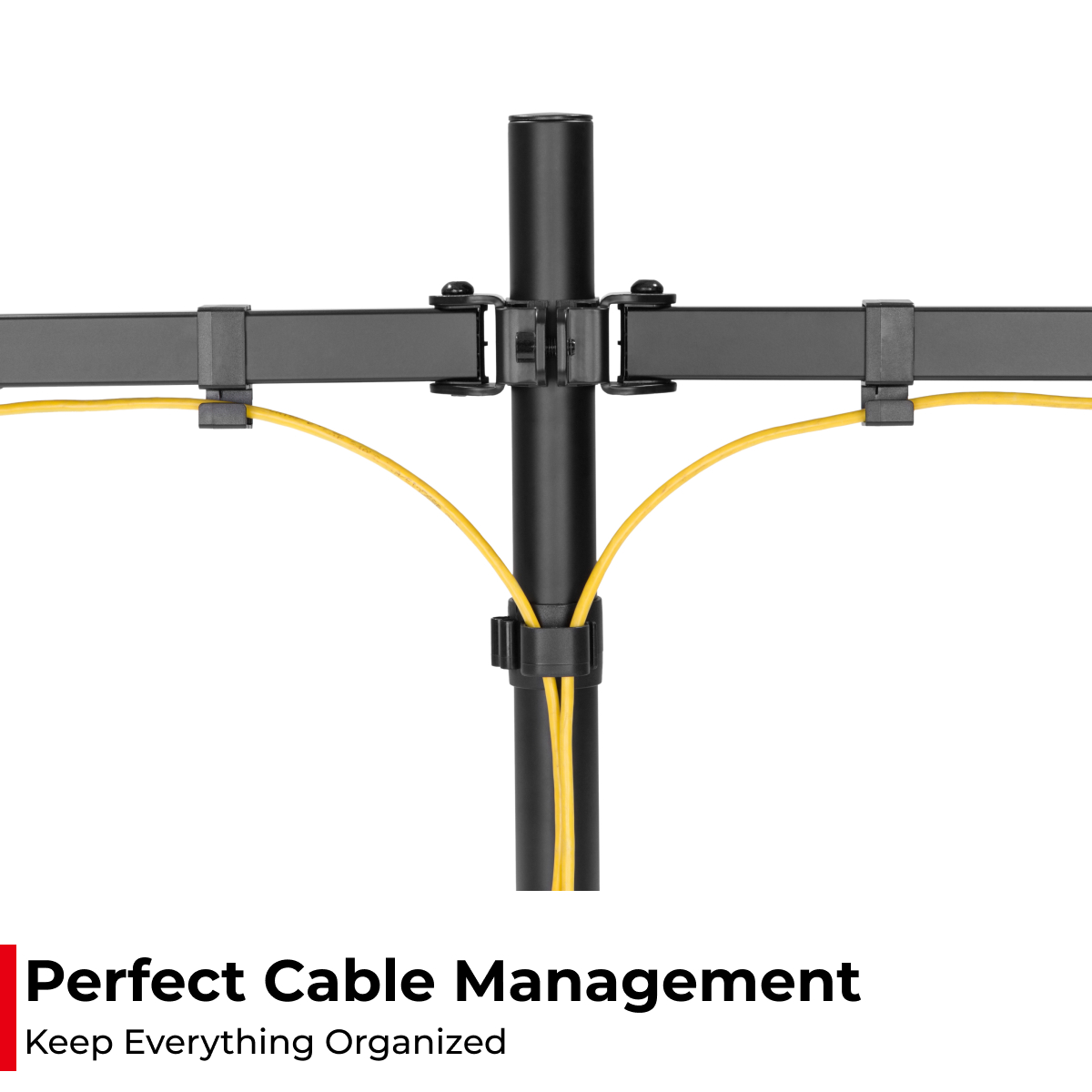 Cable Management. Cable clips help keep your space neat and organized. Store the included hex keys in the clip on the pole, so you can adjust the your monitors in a flash.